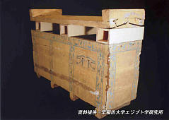 この木棺を開いてみたところ、ミイラには亜麻布を漆喰で固めたマスクがかぶせてあり、その上から全身を真っ白な亜麻布でつつんであったのだそうです。この亜麻布はまだすべてはがされておらず、ミイラの状態なども一切わからない状態で今後の研究が待たれます。 |